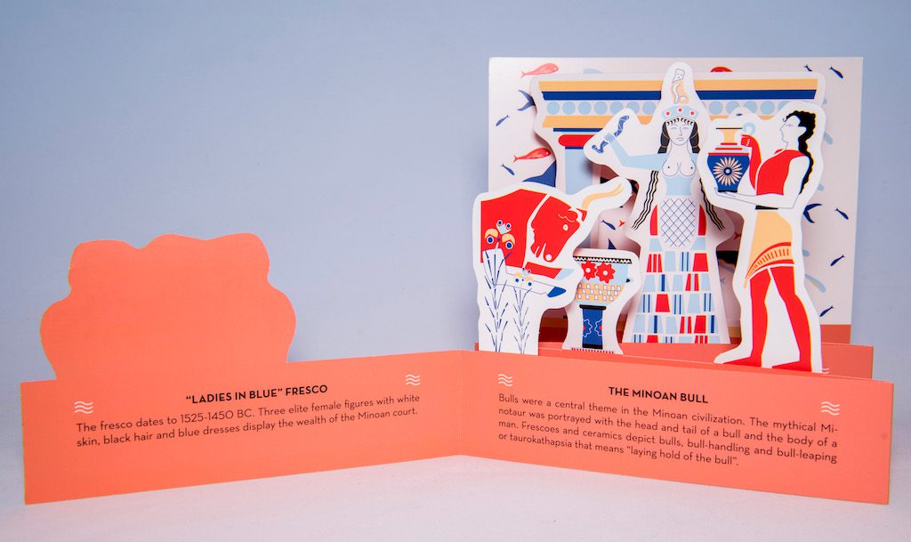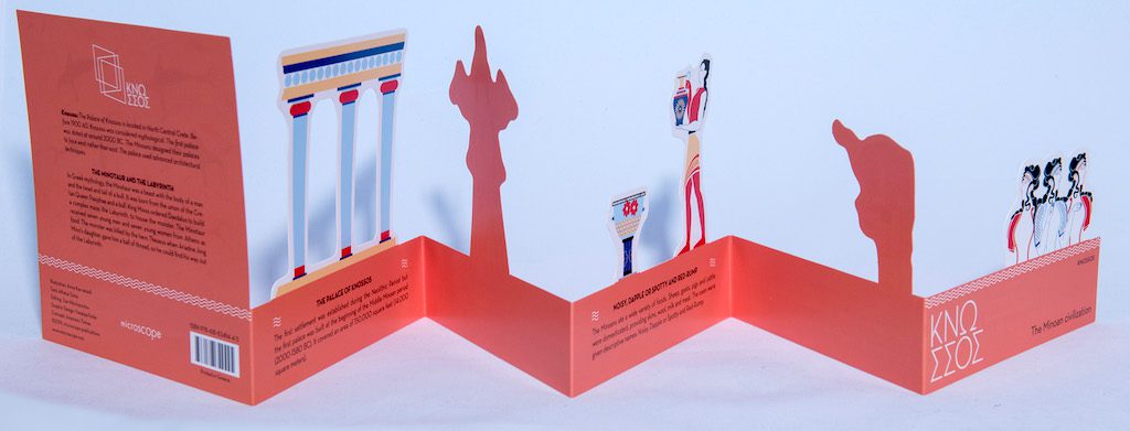 Ένα σύντομο τρισδιάστατο βιβλίο ακορντεόν για την Κνωσσό και τη Μινωική Κρήτη, με πληροφορίες για τα σημαντικότερα αξιοθέατα.