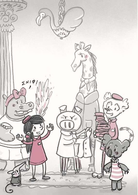 «Ξετυλίγονται καταπληκτικοί χαρακτήρες στο Ξενοδοχείο Φλαμίνγκο του Άλεξ. Το κλείνω!», Σάρα Ότζιλβι, εικονογράφος του ΤΟ ΑΓΟΡΙ ΠΟΥ ΖΟΥΣΕ ΜΕ ΤΟΥΣ ΔΡΑΚΟΥΣ και ΟΙ ΣΚΥΛΟΙ ΔΕΝ ΧΟΡΕΥΟΥΝ ΜΠΑΛΕΤΟ
